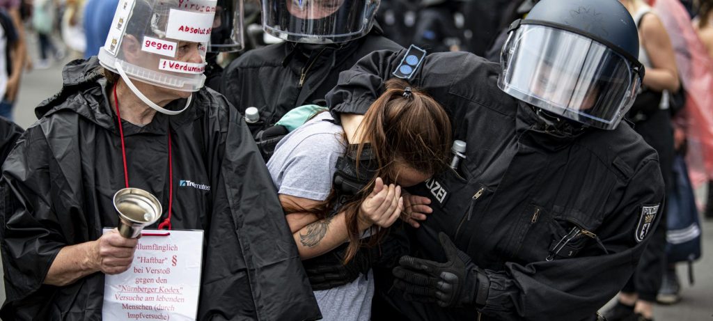 Jest sierpień 2021 r. Niemcy oficjalnie zakazały demonstracji przeciwko oficjalnej ideologii „Nowej Normalności”. Inne zgromadzenia publiczne, takie jak demonstracja Christopher Street Day (na zdjęciu poniżej), tydzień temu, są nadal dozwolone. Zakazanie opozycji politycznej jest klasyczną cechą systemów totalitarnych. Jest to również klasyczny ruch władz niemieckich, który da im pretekst, którego potrzebują, aby jutro uwolnić oddziały zbirów Nowej Normalności na demonstrantów.